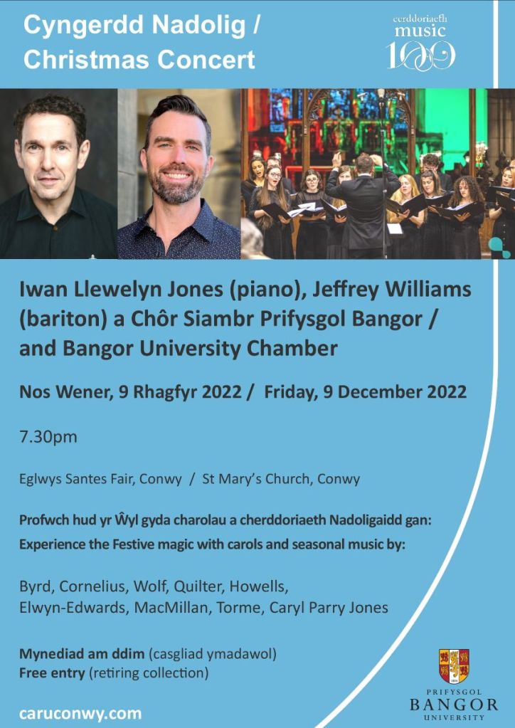 Christmas Concert at St. Mary’s Church, Conwy (9th December 7.30pm) Posted byBro CelynninDecember 3, 2022Posted inUncategorized Share this: Click to share on X (Opens in new window) X Click to share on Facebook (Opens in new window) Facebook Like Loading...