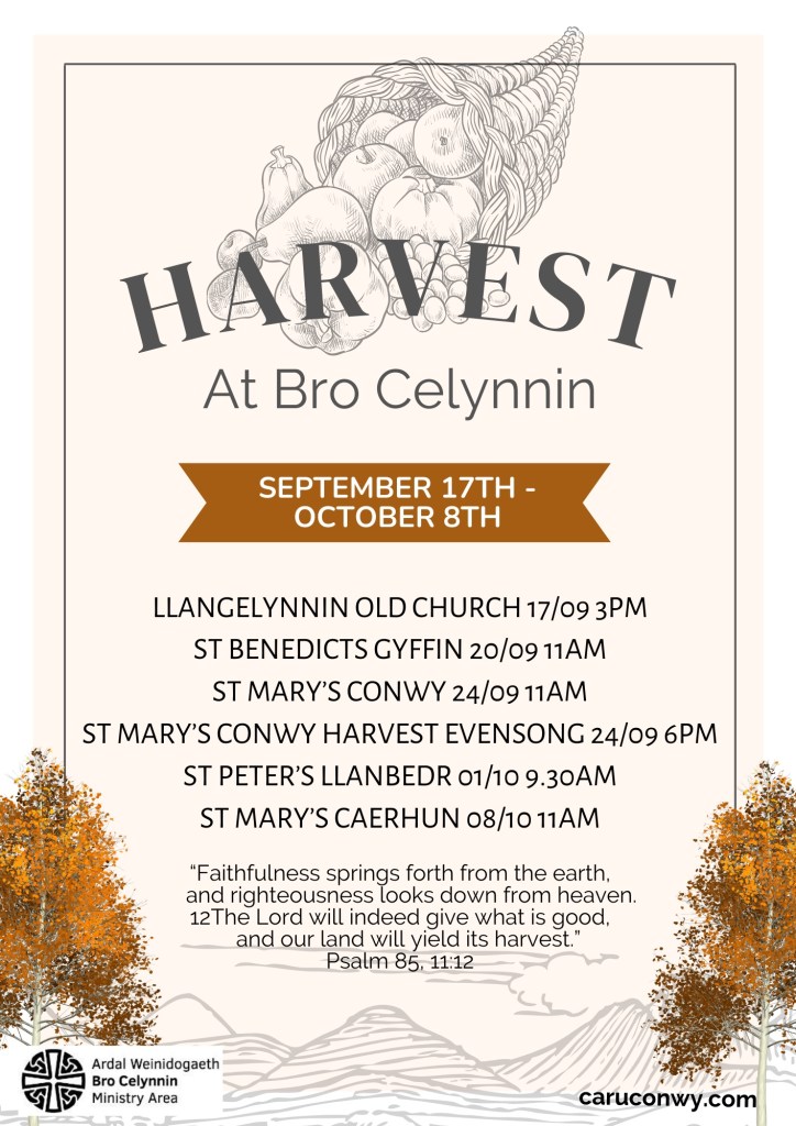 Harvest Services Posted byBro CelynninSeptember 16, 2023October 10, 2023Posted inEvents, St. Mary's Church, Conwy Share this: Click to share on X (Opens in new window) X Click to share on Facebook (Opens in new window) Facebook Like Loading...