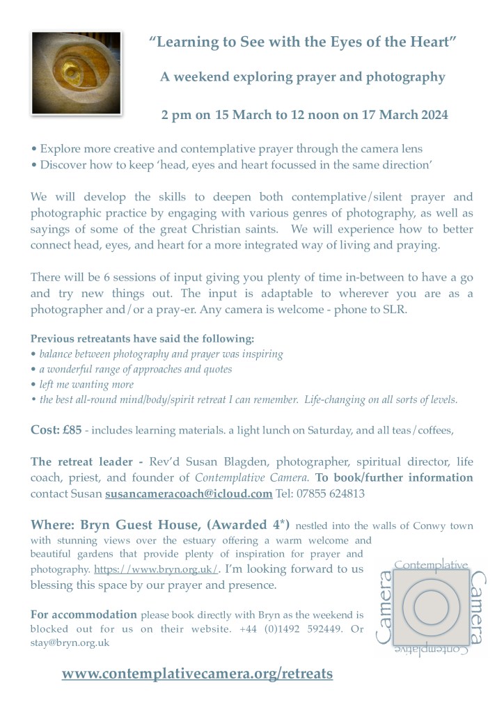 A wonderful opportunity for retreat, reflection, and photography with our very own Rev. Susan Blagden here in Conwy Town at the Bryn Guest House. Book your place or find out more at the link below