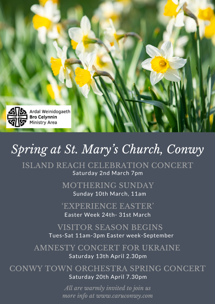 Upcoming events at St. Mary’s Conwy. Keep a note for your diaries! As always, there is no charge for entry to any of our concerts- donations are gratefully received in support of both our church and the artists and musicians.