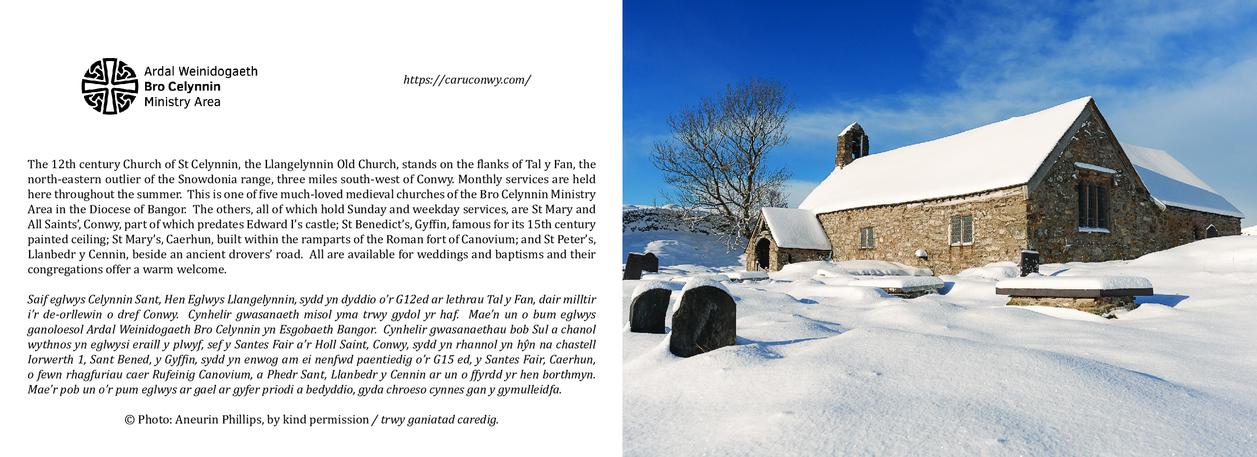 All proceeds support the five churches of the Bro Celynnin Ministry Area, reg. Charity No 1185028. For more information on supporting our churches and the work we do in the community, please click here