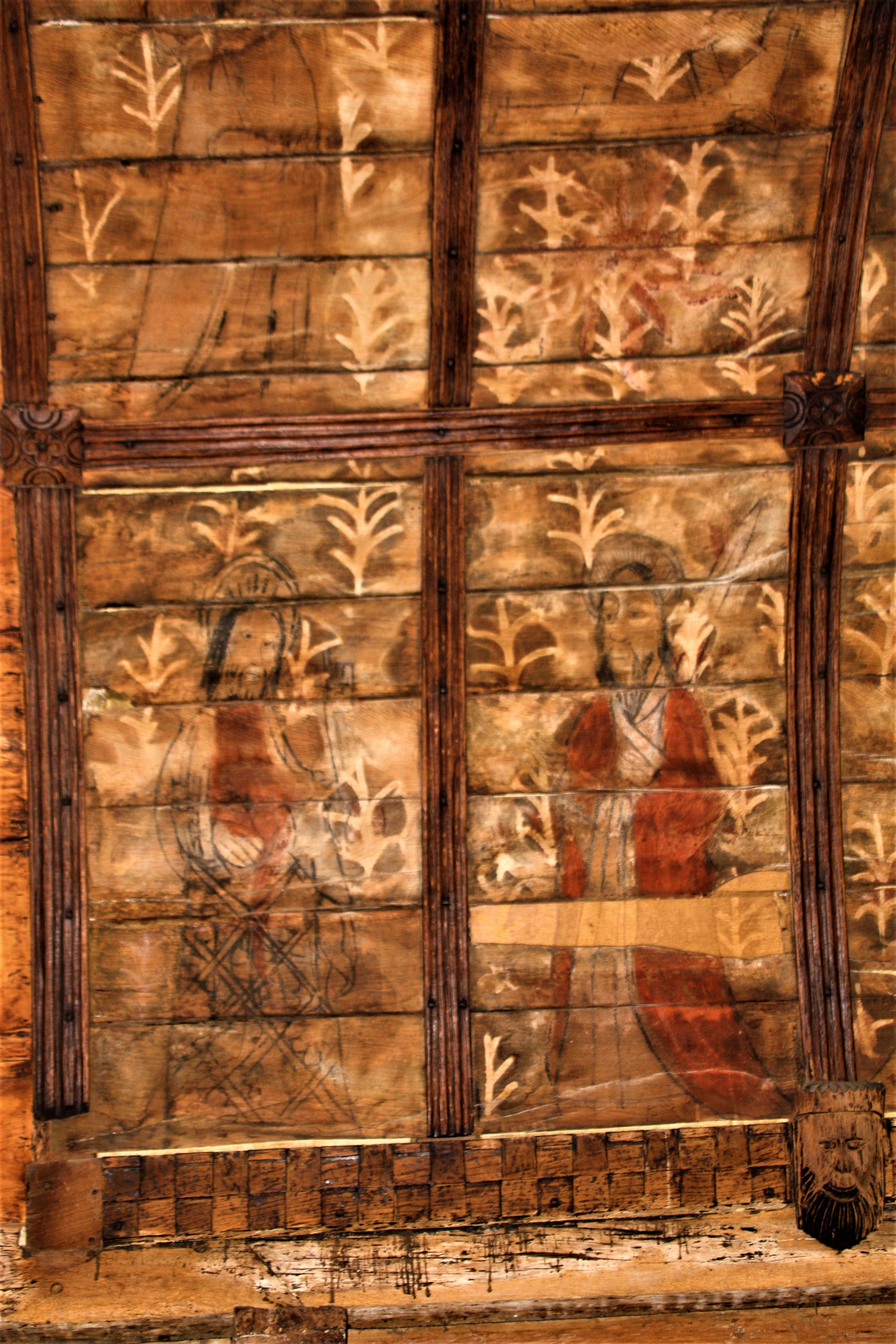 However, the must see is at the other end of the Church. There are sixteen 15th century panels painted onto the arched vault of the Sanctuary, which depict the four Evangelists (Matthew, Mark, Luke and John), who are flanked by female figures in red, olive and grey, against a foliage background.