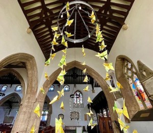 Summer 2021 was a very particular time in our history – the moment when we took the first, tentative steps out of the ‘chrysalis’ of confinement and protection. Just as the caterpillar is transformed through the darkness, we have emerged changed by our experience of the pandemic. But before we experience the total freedom of extending our wings, we are still fragile. Each beautiful, created and known by God. This was the inspiring idea of artist Jackie Ley’s, to allow all our visitors to record their feelings about the pandemic and their prayers on squares cut from OS maps, then made into origami butterflies and hung aloft in St Mary’s Conwy. We have also run workshops in local schools, as children and young people have been able to express their feelings, know the desires of their hearts are known to God and be encouraged to have hope in the future. He hears us when we pray.