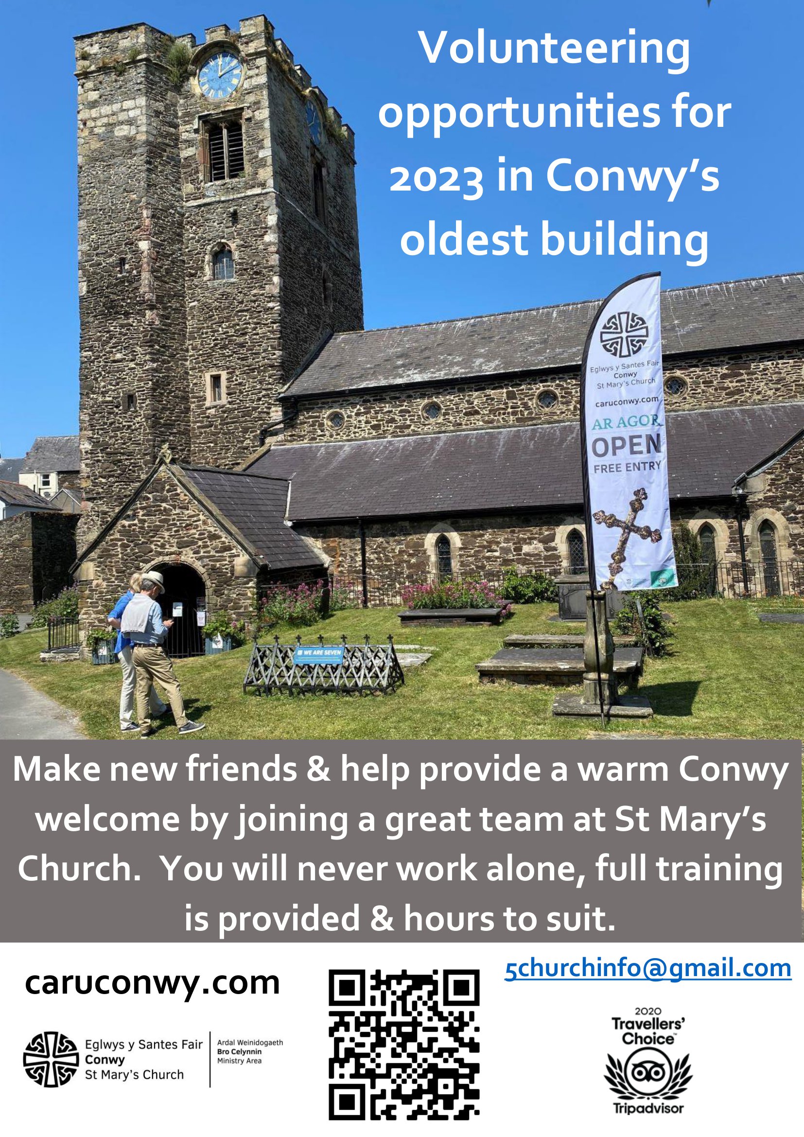 Members of our welcome team come from all parts of our community, not just from the congregation. It’s a chance to make new friends and do something really positive for the town – and indeed, the whole region’s tourism and cultural offer. You’ll meet people from all over the world – and from around the corner! You’ll get the chance not only to meet visitors during our main season (Easter to September), but also steward at concerts year round, and at the annual Christmas Tree Festival.
