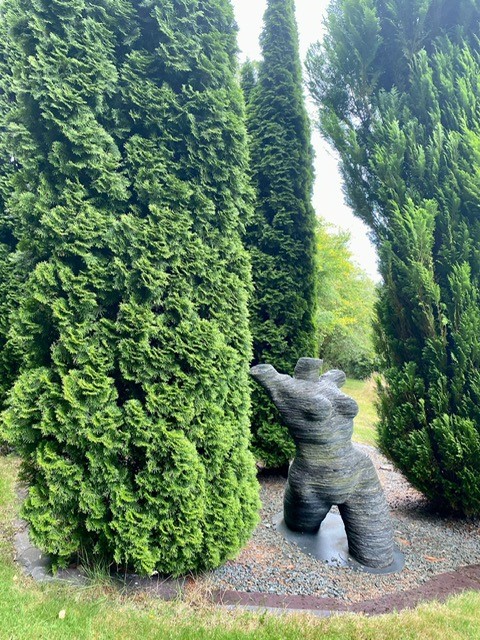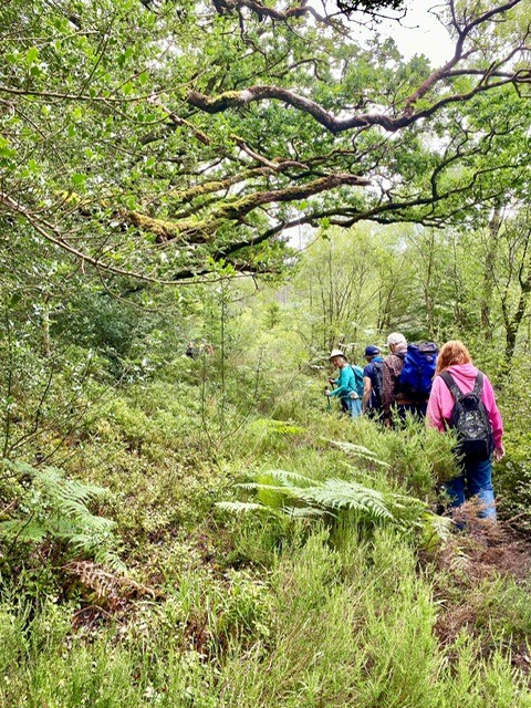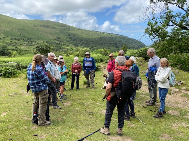 July’s circular walk from Llanbedr – y – Cennin incorporated Peter Barnes’ sculpture garden, the southern slope of Pen-y-Gaer and ending at St Peter’s church – the silent walk through bracken prompting a rich discussion of metaphors for life.