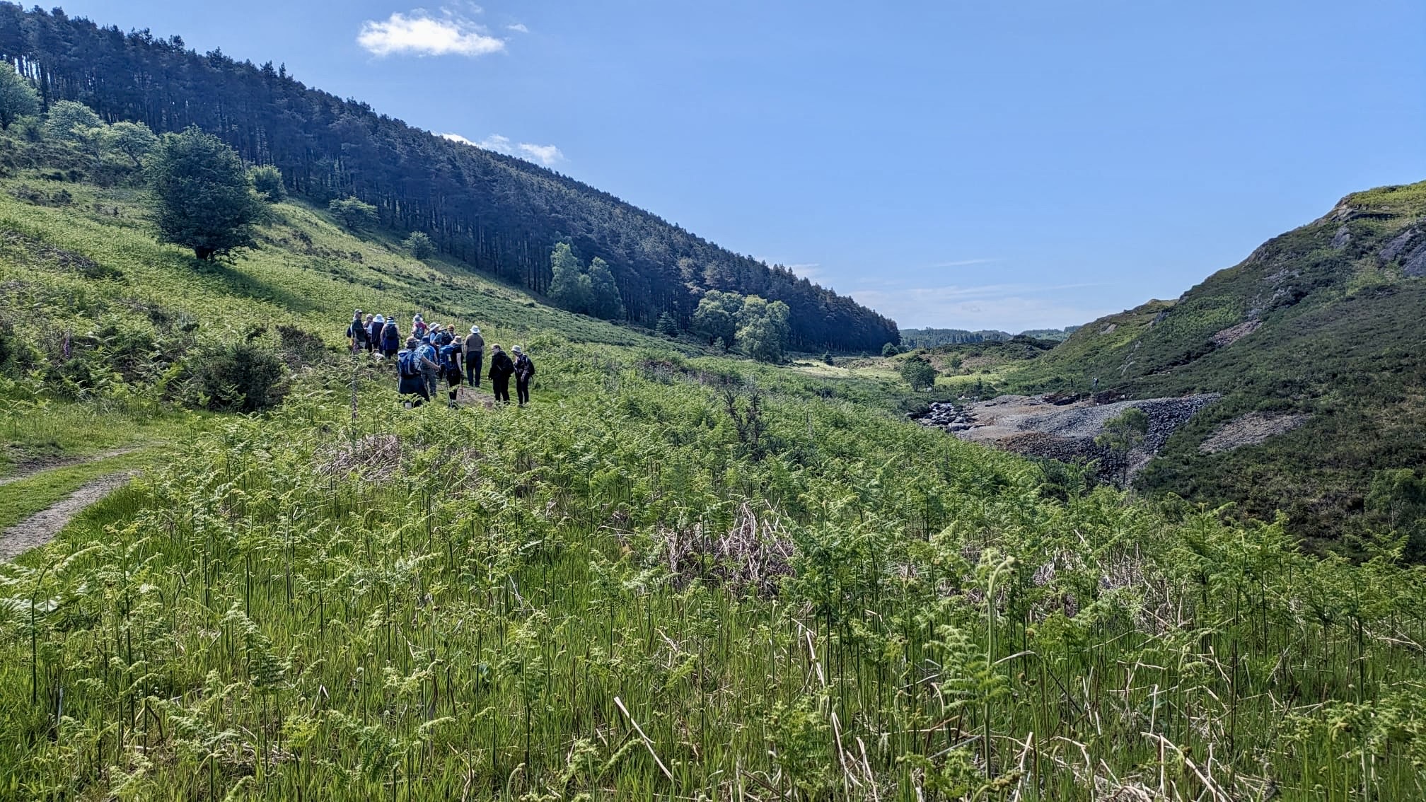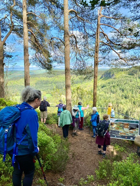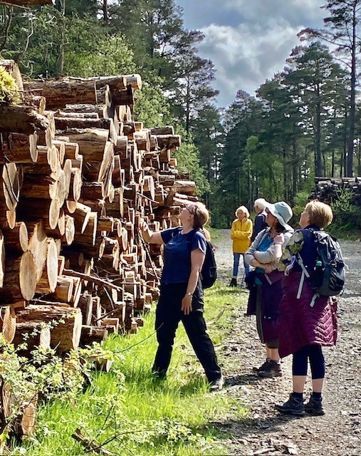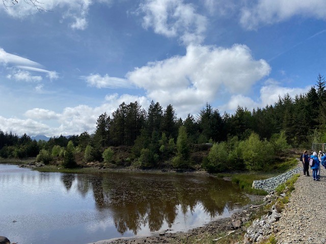 On May Bank Holiday weekend we enjoyed a ‘Forest Lakes’ walk in Gwydyr Forest, aided particularly by Mo Spear’s knowledge of timber! We gained perspective through the combination of workplace (the forest and old lead mines) and a view to the hills beyond …