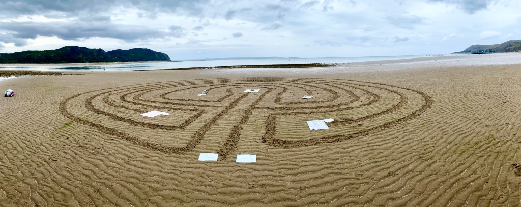 In August we enjoyed slow, contemplative walking through a labyrinth on Conwy Morfa beach, beautifully put together by Mo Spear.