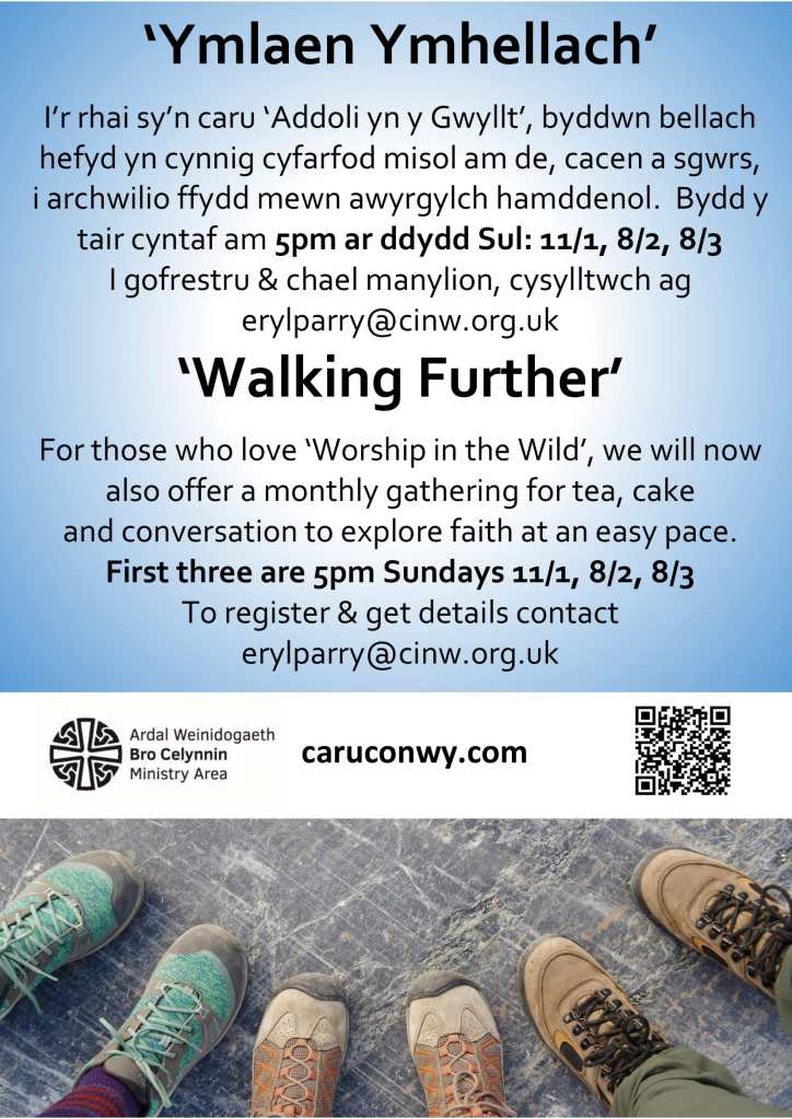 From January, we are offering an additional monthly gathering on second Sundays called Walking Further – a place to explore faith more deeply in a relaxed and hospitable atmosphere. Register your interest by sending an e-mail via this link.